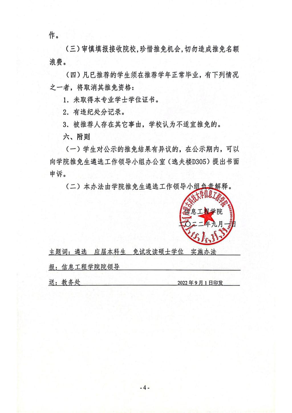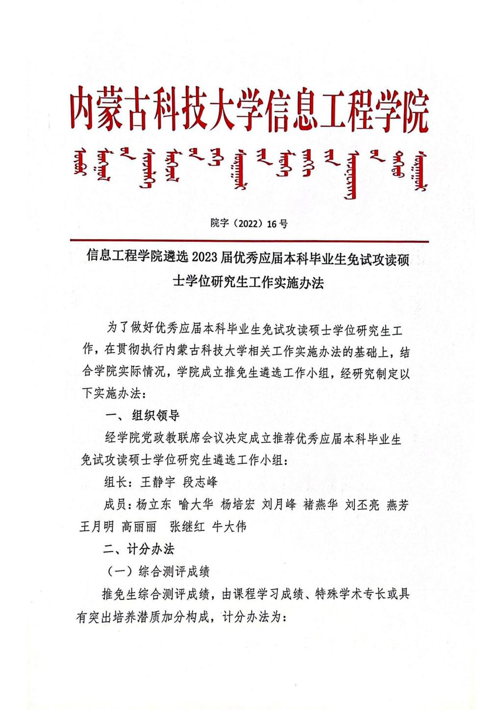 信息工程公司2023届本科毕业生免试攻读硕士学位研究生工作实施办法