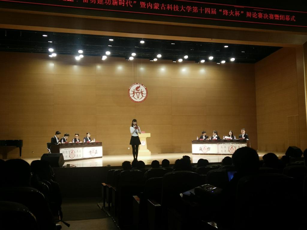古有卧龙诸葛舌战群儒,今有群英荟萃慷慨陈词。11月24日晚19时,由校团委、校员工会主办的m88官方网站第十四届“烽火杯”辩论赛决赛于音乐厅内举行。决赛特邀文法公司副教授张晓利、马克思主义公司副教授张彦斌、校辩论队指导老师妥佳宁、指导教师青格乐图、校团委书记韩冰作为嘉宾及评委出席。