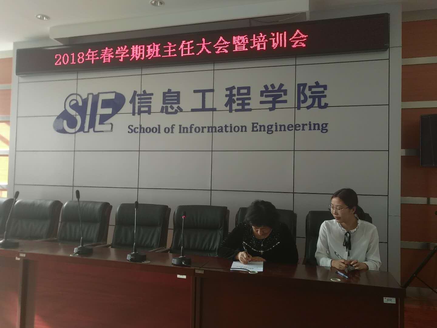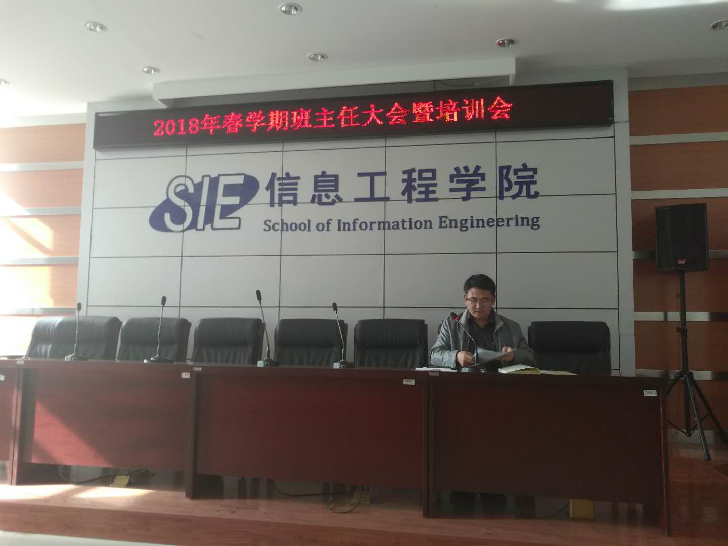 2018年4月19日下午,信息工程公司召开全体班主任大会,部署安排春学期重点工作。公司党总支书记崔桂梅,副书记、副经理段志峰、学团办工作人员及全体班主任参加会议。