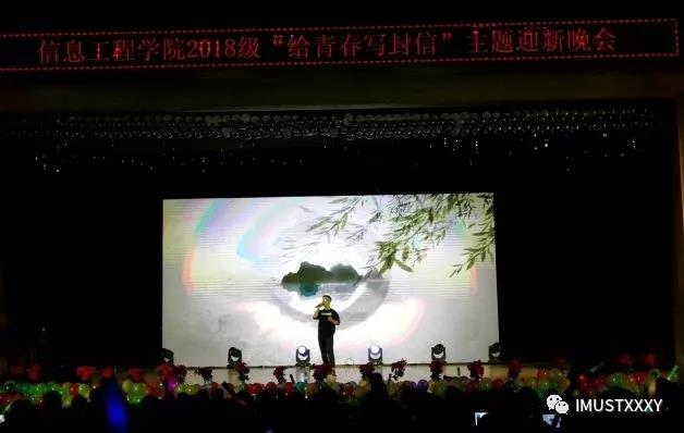9月27晚七点,信息工程公司“给青春写封信”迎新晚会在音乐厅成功举行。 公司副书记段志峰老师,团总支书记刘新老师,计算机党支部书记杨文君老师以及大一各班班主任出席了本场晚会。