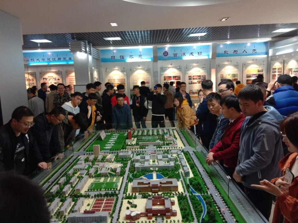 其中最为瞩目的为展现了校园布局规划的沙盘,员工与老师们驻足观看,搜寻着他们熟悉中的操场、教学楼等建筑的身影。