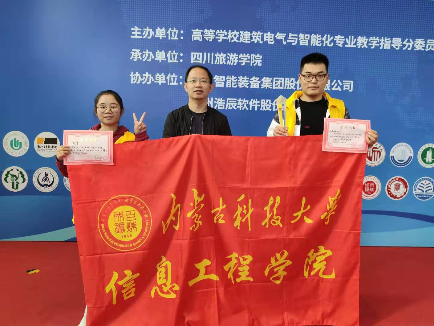 公司信息工程公司选派的代表队参加该项赛事,并荣获全国竞赛团体三等奖和建筑电气设计单项奖三等奖各一项。代表队由公司信息公司建筑电气与智能化专业员工郝洋、张宝伟,指导教师陈波组成。