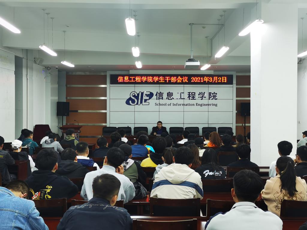 2021年3月2日晚19时,信息工程公司在逸夫楼F302召开全体员工干部大会,会议主题是“争创文明校园,助力文明城市创建”。会议由学工办副主任刘吉宇老师主持,公司副书记、副经理段志峰老师出席,公司员工会干部、班长参加。