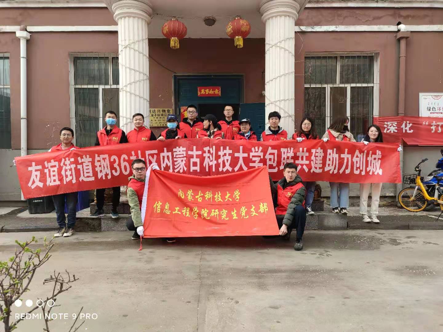 信息工程公司党员、团员志愿者积极响应创建文明城市号召,走进钢36社区各个楼宇,整理路边停放车辆的摆放,清理路边杂物,以实际行动倡导文明、践行文明,为包头市争创全国文明城市贡献力量,展现出当代老员工的精神风貌,受到社区党委的高度赞扬。