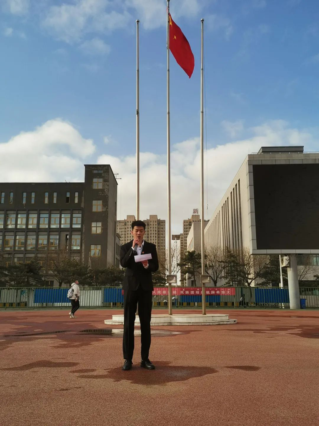 此次仪式的举行,不仅增强了同学们的爱国意识和民族自豪感,还有利于同学们继续发扬艰苦奋斗的精神担当,为祖国繁荣与民族复兴而努力奋斗!