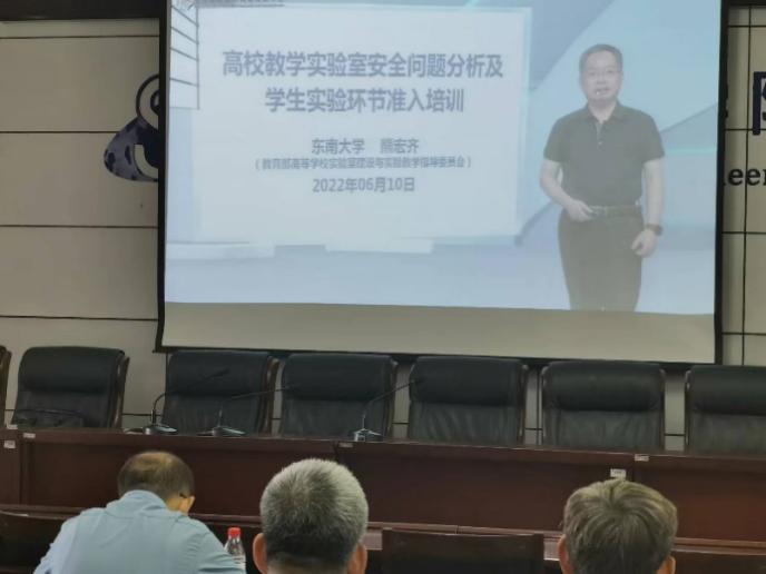 2022年6月10日,信息工程公司在逸夫楼F302会议室组织实验教师参加教育部高等教育司举办的“高校教学实验室安全与管理培训班”。