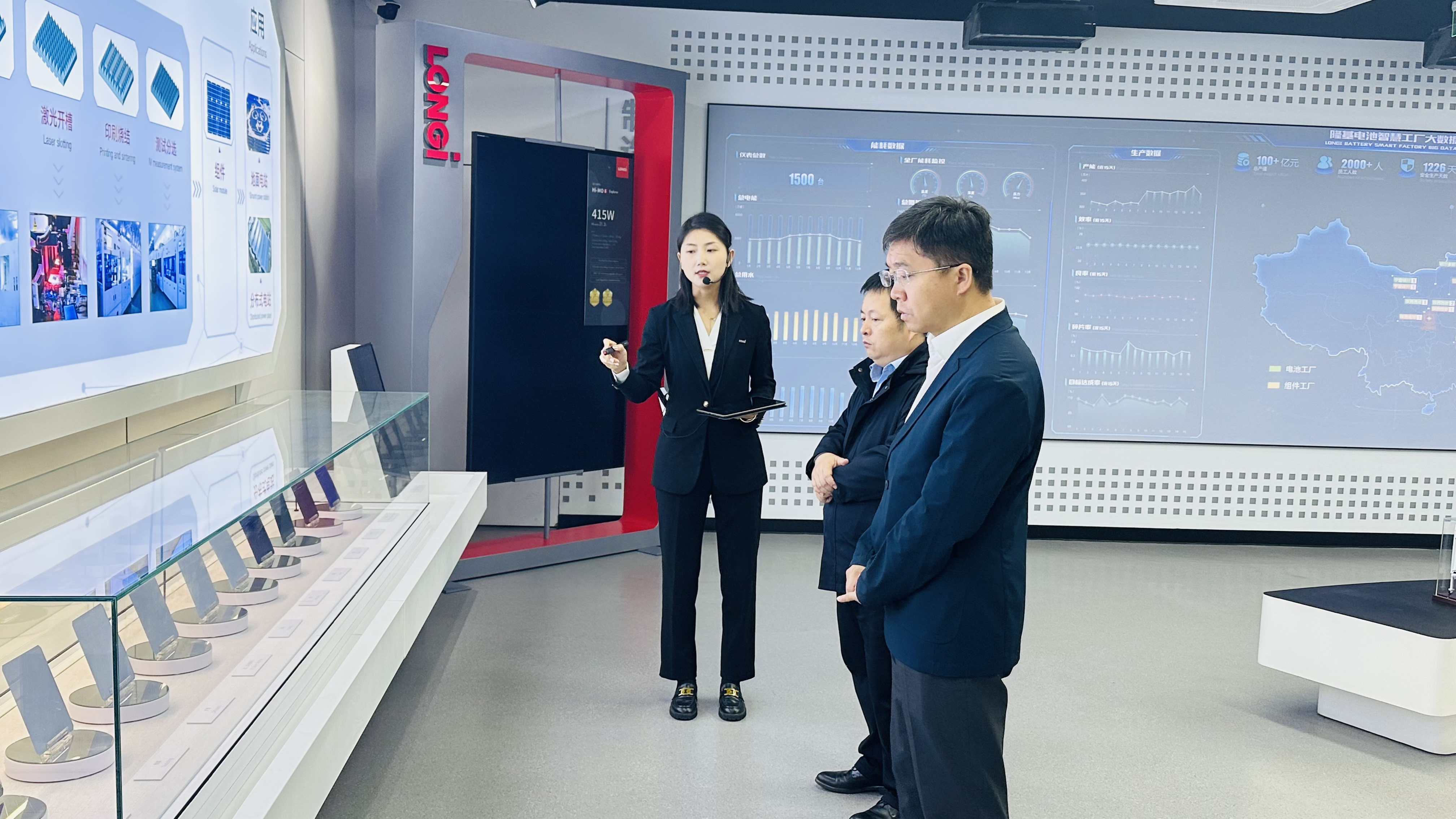 王静宇经理一行还参观了隆基能源展厅和现代化生产线,详细了解集团发展现状和最新研究成果,近距离参观现代化、智能化的电池片生产流程及工艺等。