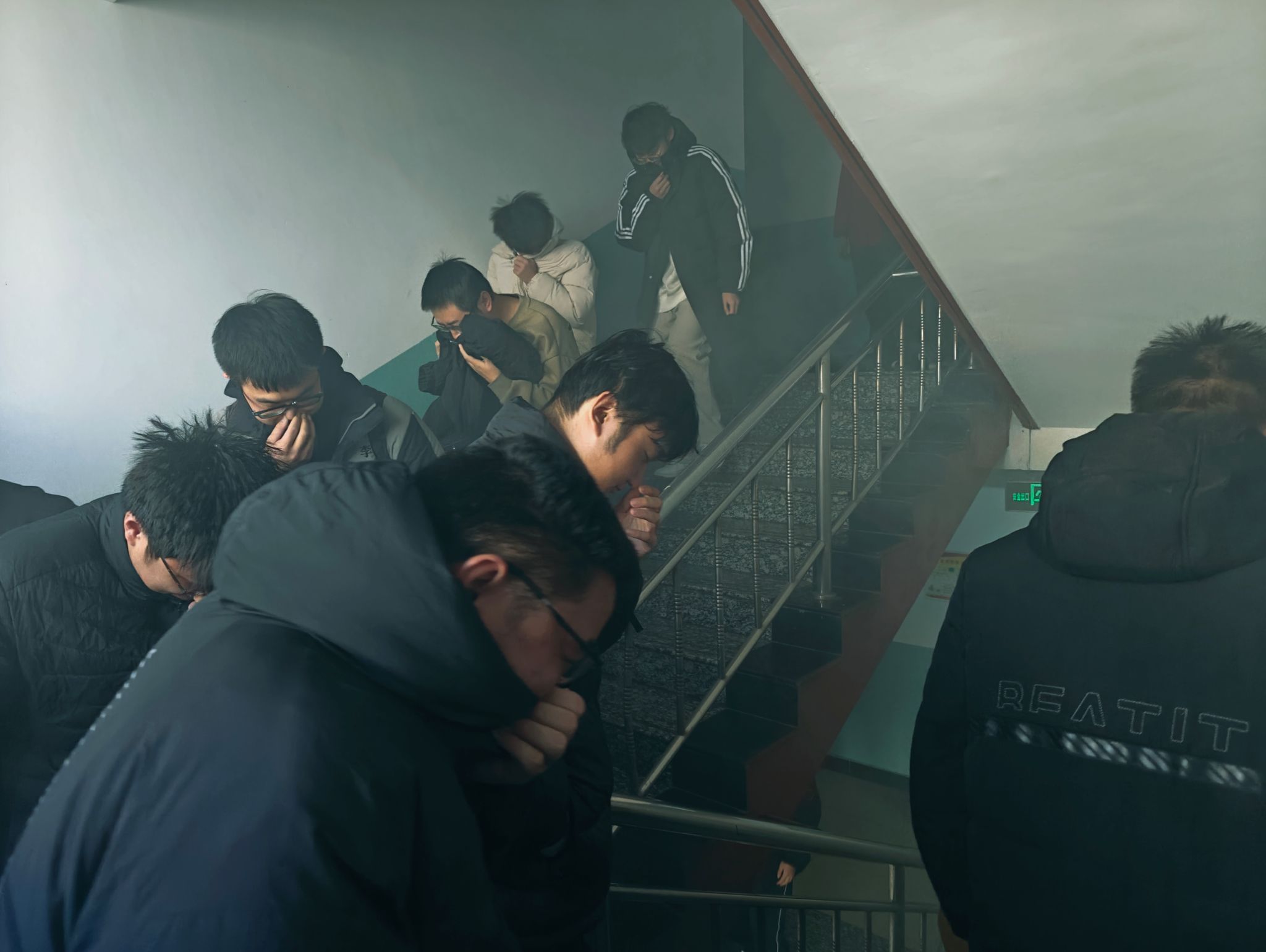下午16:00,驻楼辅导员李磊老师在其所在的科苑东区06号楼(原13号楼)组织员工开展演练活动,员工响应迅速。