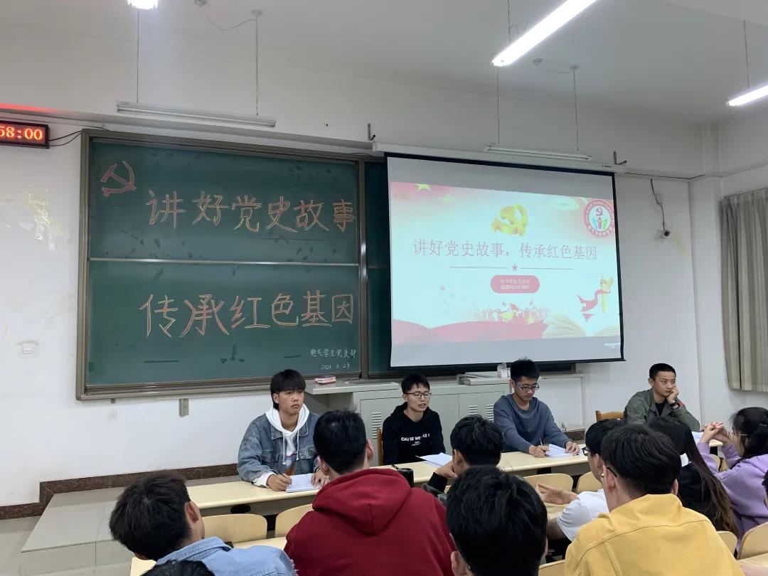 为了更好的学习党史,电气员工党支部于2021年3月28日晚7:00在逸夫楼G404召开了以“讲好党史故事,传承红色基因”为主题的党课。