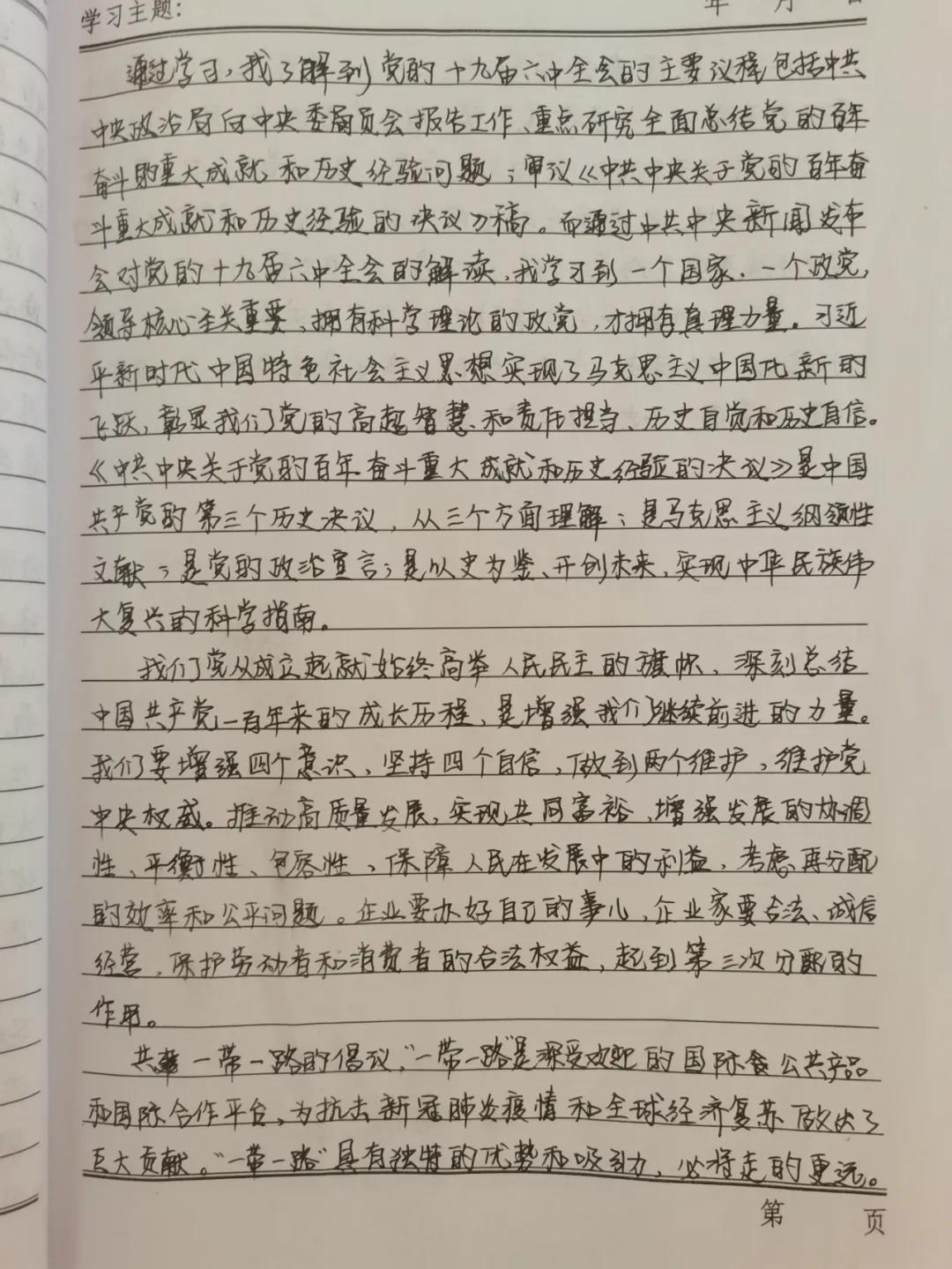 发布会开始,全体党员同志认真观看“十九届六中全会精神发布会”,并认真整理笔记。全会强调,全党必须永远保持同人民群众的血肉联系,践行以人民为中心的发展思想,不断实现好、维护好、发展好最广大人民根本利益,团结带领全国各族人民不断为美好生活而奋斗。全党必须铭记生于忧患、死于安乐,常怀远虑、居安思危,坚持全面从严治党,坚定不移推进党风廉政建设和反腐败斗争,做到难不住、压不垮,推动新时代中国特色社会主义事业航船劈波斩浪、一往无前。