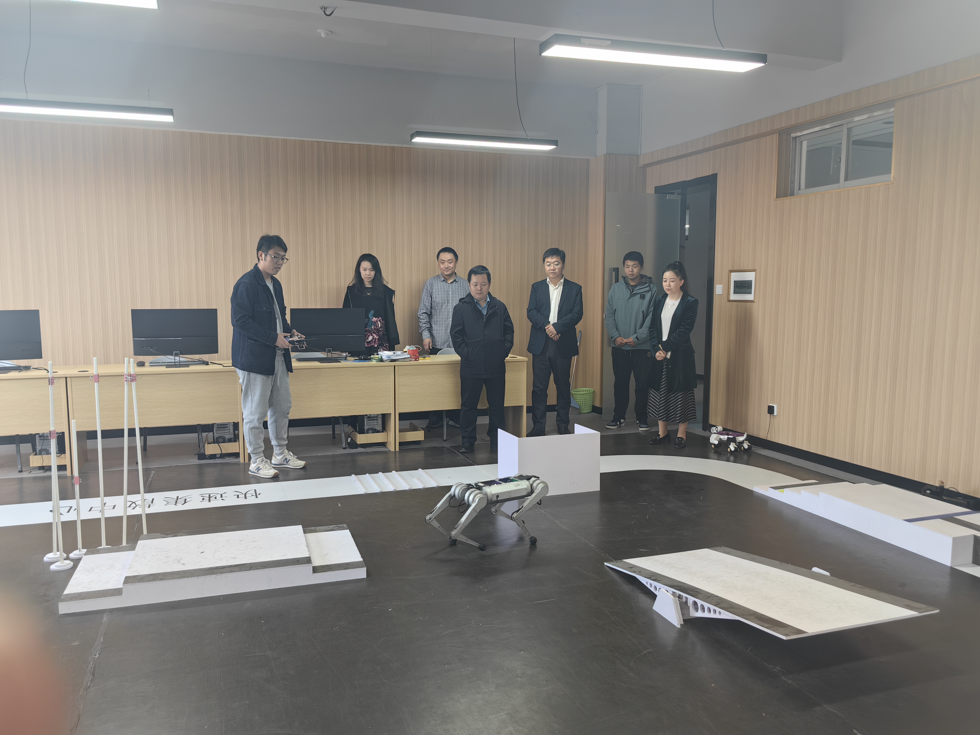 随后,王静宇一行参观了延安大学西安创新公司部分实验室、AI场景综合应用中心及学科竞赛基地,详细了解四足机器人、人工智能无人车和先进计算机视觉等赛项的培训组织和竞赛情况,并与基地培训教师就信息类竞赛设备选型、人才选拔、方案制定进行了交流。