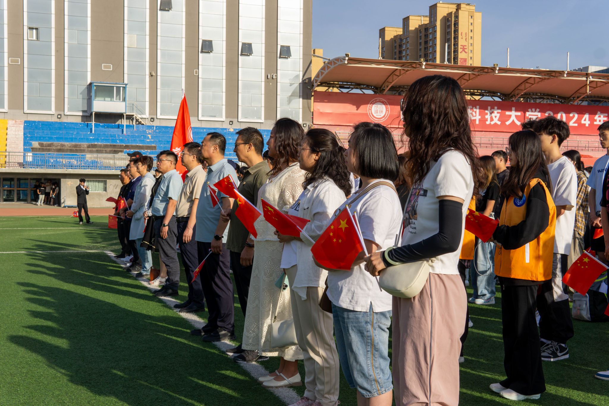 为落实立德树人根本任务,引导员工厚植爱国荣校情怀,牢固树立“我与母校共成长”的主人翁意识,6月17日早7:00,公司在田径场举行“知校、爱校、荣校”主题升旗仪式。公司党政领导、系部老师、专兼职辅导员、班主任等党员教职工,2022级、2023级全体员工,员工党员等840余人参加了活动。