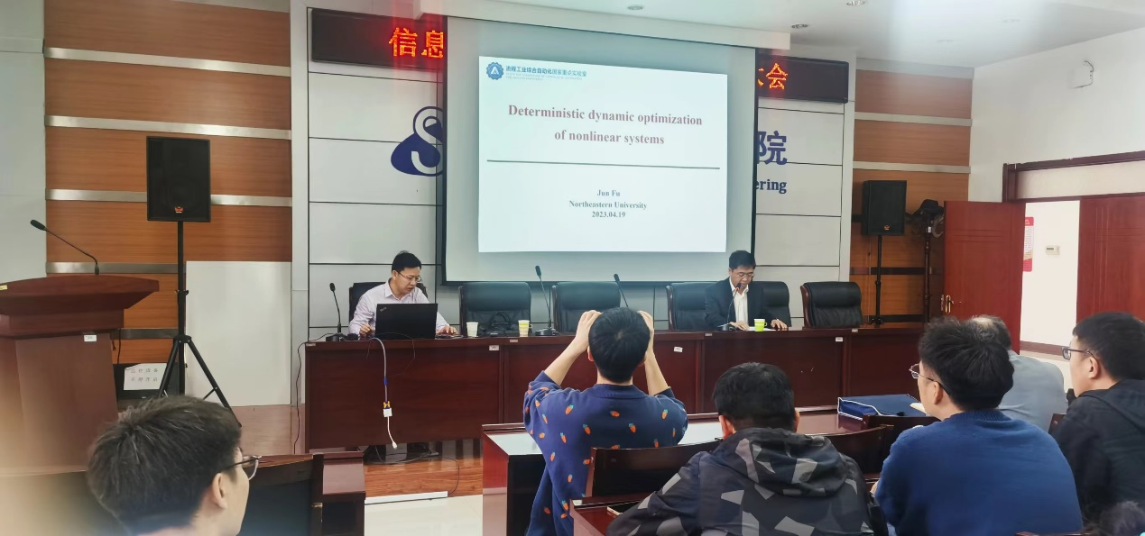 4月19日上午,东北大学未来技术公司经理、机器人科学与工程公司常务副经理、博士生导师付俊教授作题为“Deterministic dynamic optimization of nonlinear systems”的学术报告。科技处处长李宝山、信息工程公司经理王静宇、副经理杨培宏、教师和员工代表130余人参加报告会。